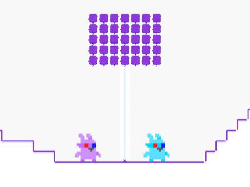 Two cute blue and purple bunnies escape from the forest. They must escape from the forest because everything is getting snow white more and more. they need to reach the guard at the end of each level reach the guard and pass the levels!